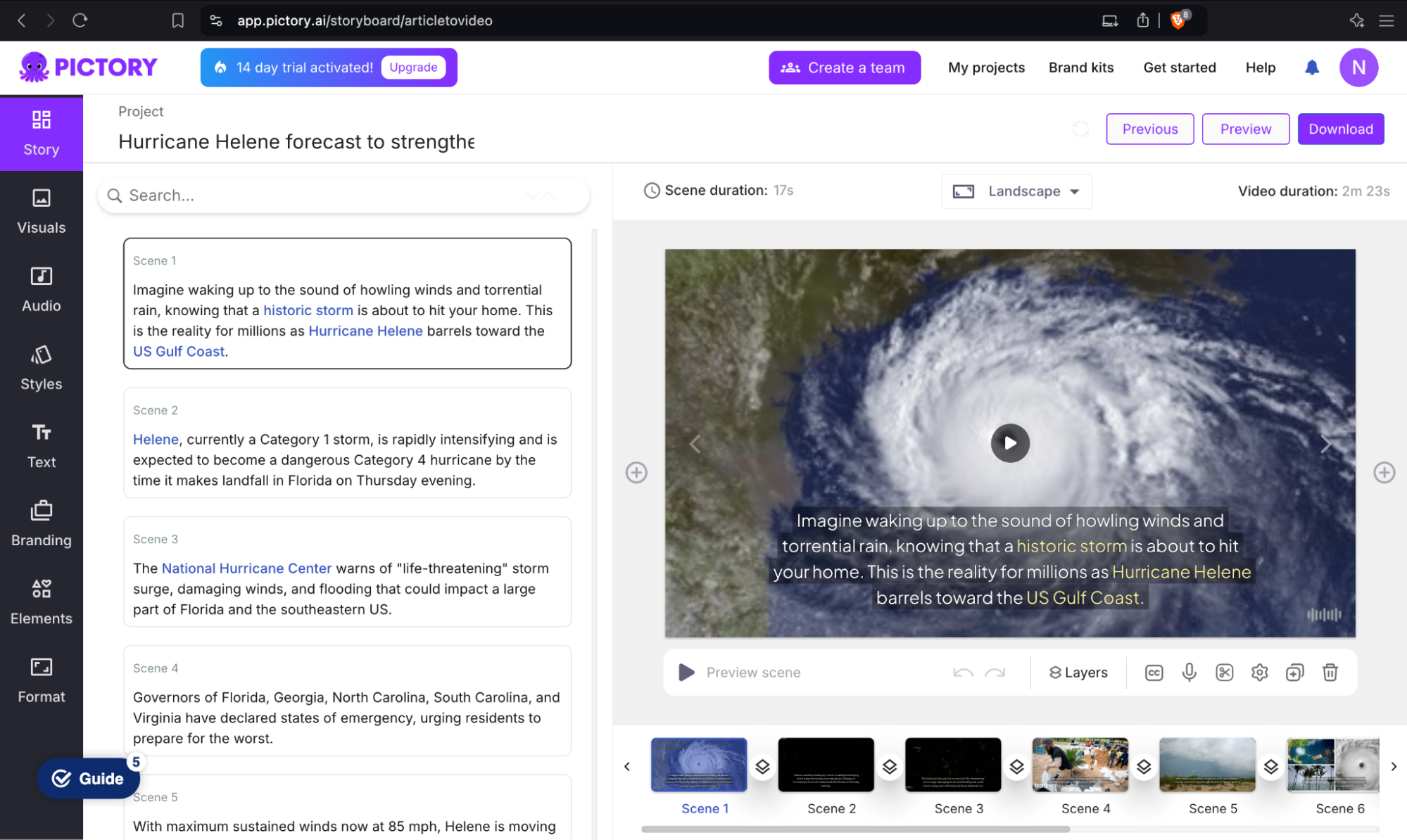 Generated clips sometimes lack context and accuracy while looking too generic and “stock.” They may not pick the best scenes or images for your text, and there are limited aspect ratios to choose from. The ‘storyboard’ editor tool is basic and may limit freedom and creative options for advanced users. The AI voice-over might not follow the punctuation correctly or mispronounce some words or names. You might need to edit or redo your video to get it right. The support team, while helpful, is reported to be slow to respond.
