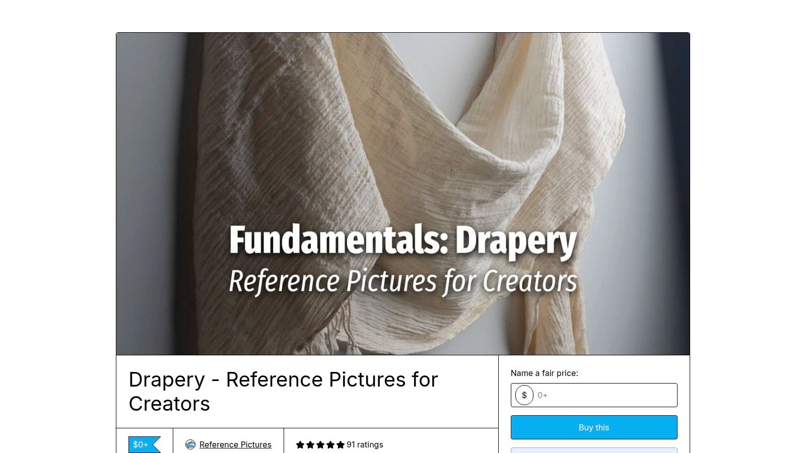 | Reference.Pictures (Gumroad) – Drapery Pack | Pay-what-you-want drapery photos; neutral-lit fold studies; commercial use | ★★★★ | 💰 | Students · Study-focused artists | ✨ Fold-focused, no-attribution commercial license |
