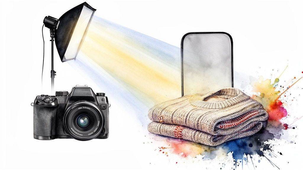 Lighting isn't just an element of photography; it's the element. It’s what sculpts the garment, defines its shape, and guarantees the color you capture is the color your customer receives. Bad lighting can make a premium product look cheap, but great lighting can make even a basic t-shirt look like a must-have item.