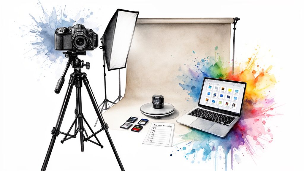 Even if you're working with a smaller budget, you can still get excellent raw images by following some smart affordable product photography tips. It all comes down to planning your shots and organizing your files with the final edit in mind. Get this foundation right, and you're building a fast, scalable, and genuinely stress-free post-production workflow.