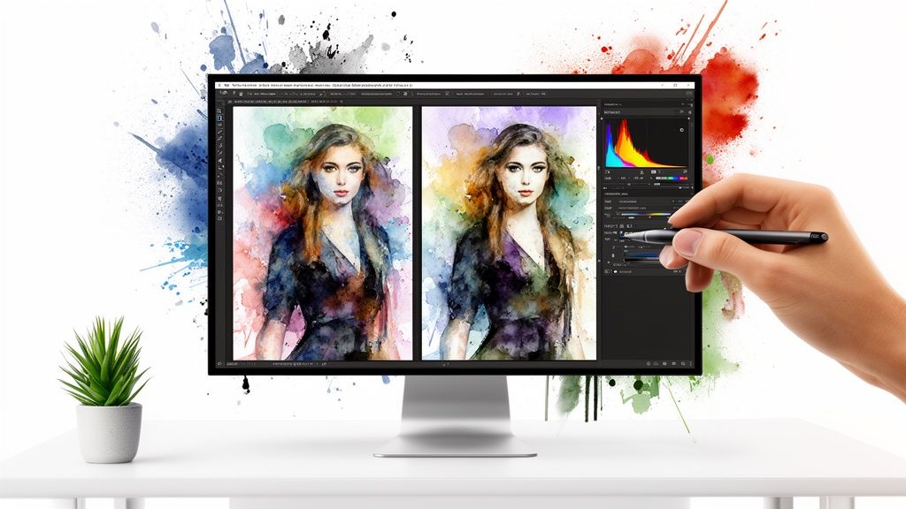 The photoshoot is really just the beginning. The magic that turns good shots into iconic fashion images happens in post-production. This is your chance to transform solid raw files into stunning, brand-aligned assets.