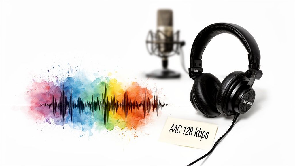 My rule of thumb? I start at 128 kbps (Stereo) for almost everything. For a typical 10-minute 1080p video, simply switching from an uncompressed default to AAC at 128 kbps can save over 100 MB. It's one of the easiest and most impactful changes you can make.