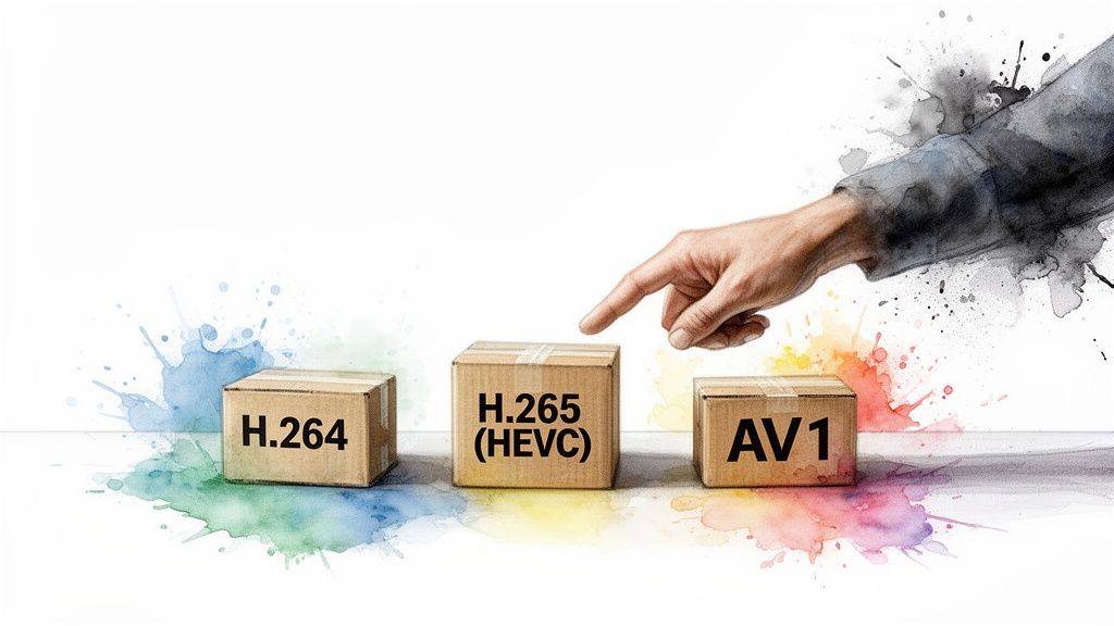 Getting this combo right from the start is the single biggest move you can make to shrink your video's file size. It’s the foundation. Everything else, from bitrate to resolution, builds on this decision.