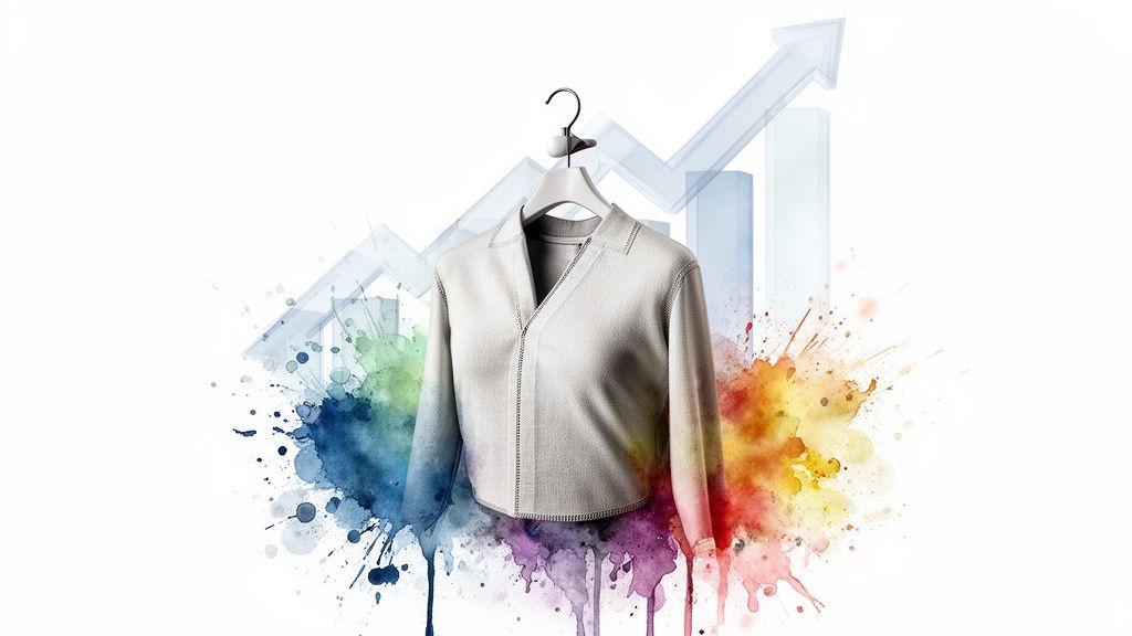 That level of detail is everything in a crowded market. The global apparel market hit a staggering $1.84 trillion valuation in 2025, a figure representing 1.63% of the world's GDP. With e-commerce grabbing 48% of those fashion retail sales, flawless imagery is no longer optional. The smartest marketers are using AI to get an edge, turning their assets and market data into campaigns that convert.