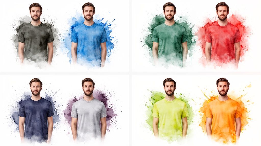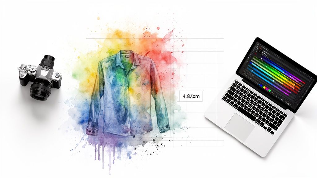 This means your lighting setup has to be identical for every single product in a collection. It doesn't matter if you're using a pro studio or a simple DIY lightbox; the conditions must be repeatable. After the shoot, color correction is your next vital step to make sure the colors on screen are a true-to-life match for the actual garment.
