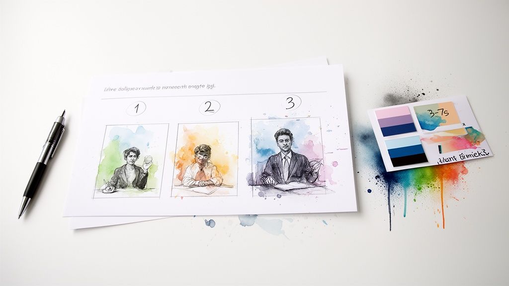 Once the mood and message are clear, it's time to map out the sequence. You don't need a Hollywood-level script. For a short intro, a simple storyboard or even a bulleted list outlining the visual flow is more than enough. If you need a hand getting started, check out our practical guide on how to storyboard a video for some actionable tips.