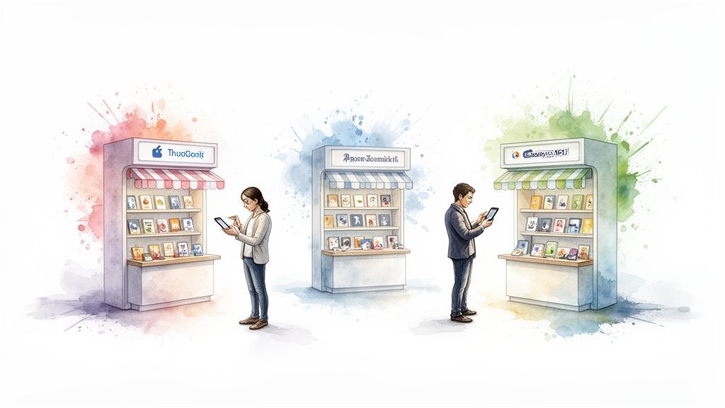 This integrated approach makes shopping feel like a natural part of just hanging out online. Someone might see a cool jacket in an influencer’s video, tap a tag to get the details, and check out in a matter of seconds. This kind of frictionless experience is often powered by features like shoppable video, a topic we dive into in our complete guide to shoppable video platforms.