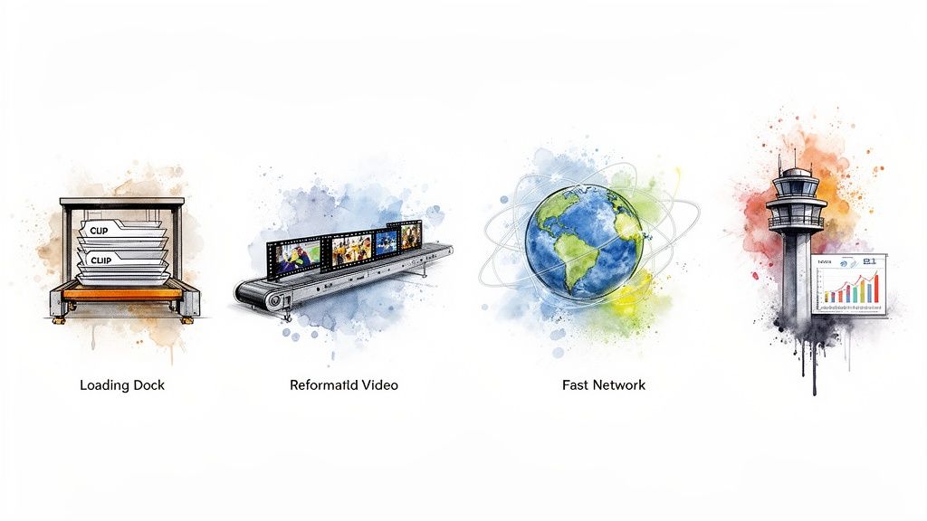 Each of these components handles a critical stage of a video's journey. Together, they turn a raw file into a flawless viewing experience for anyone, on any device, anywhere in the world. It’s an automated workflow that makes sure your content always hits the mark.