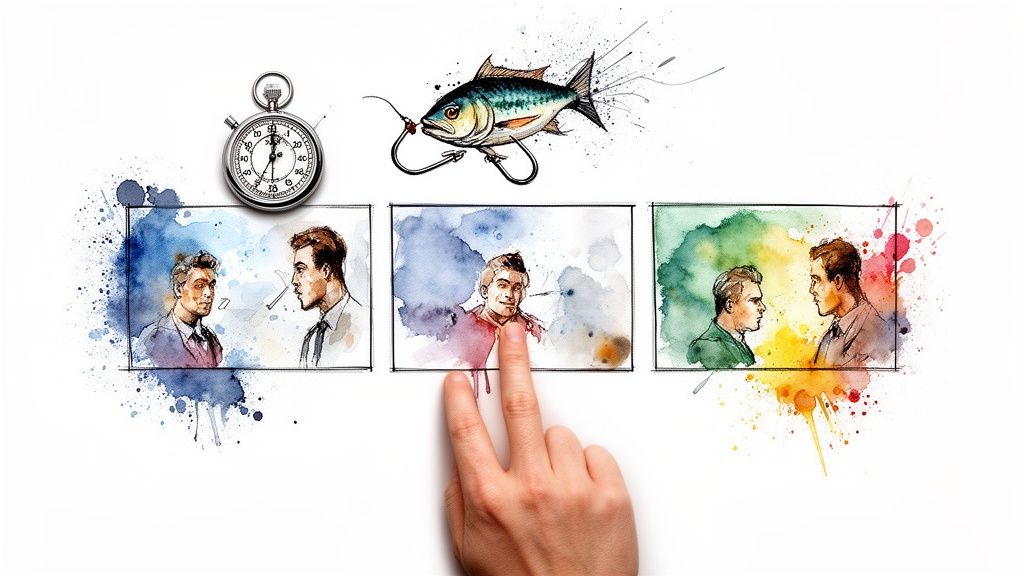 Let's be real: in a world of endless scrolling, you don’t have minutes to grab someone's attention. You have seconds. That makes the very first line of your script the most valuable real estate you own. Your hook has to be sharp, immediate, and impossible to ignore.